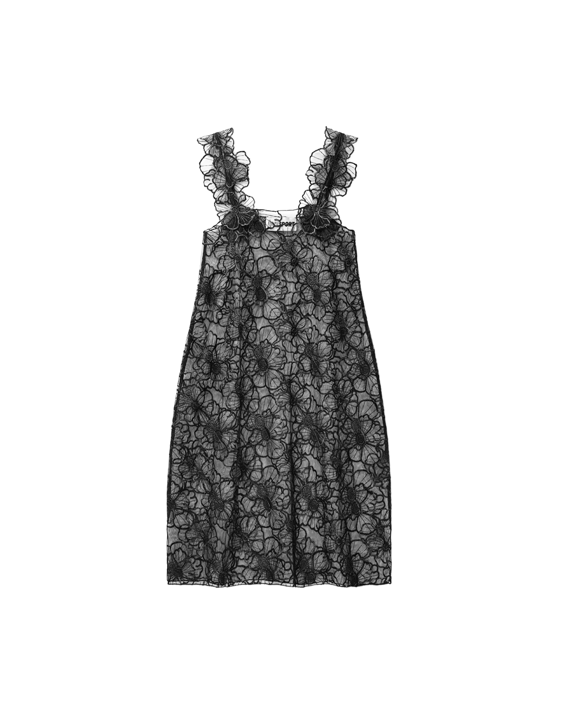 Das Iris Dress aus 90 % recyceltem Polyamid und 10 % recyceltem Polyester besticht durch seine transparente, schwarze Blumenspitze. Mit feinen Trägern, lockerer Passform und einer Länge bis unter das Knie ist es ein vielseitiges, leichtes Kleid – perfekt solo oder als Layer über Hosen und Röcken für einen modernen Look.