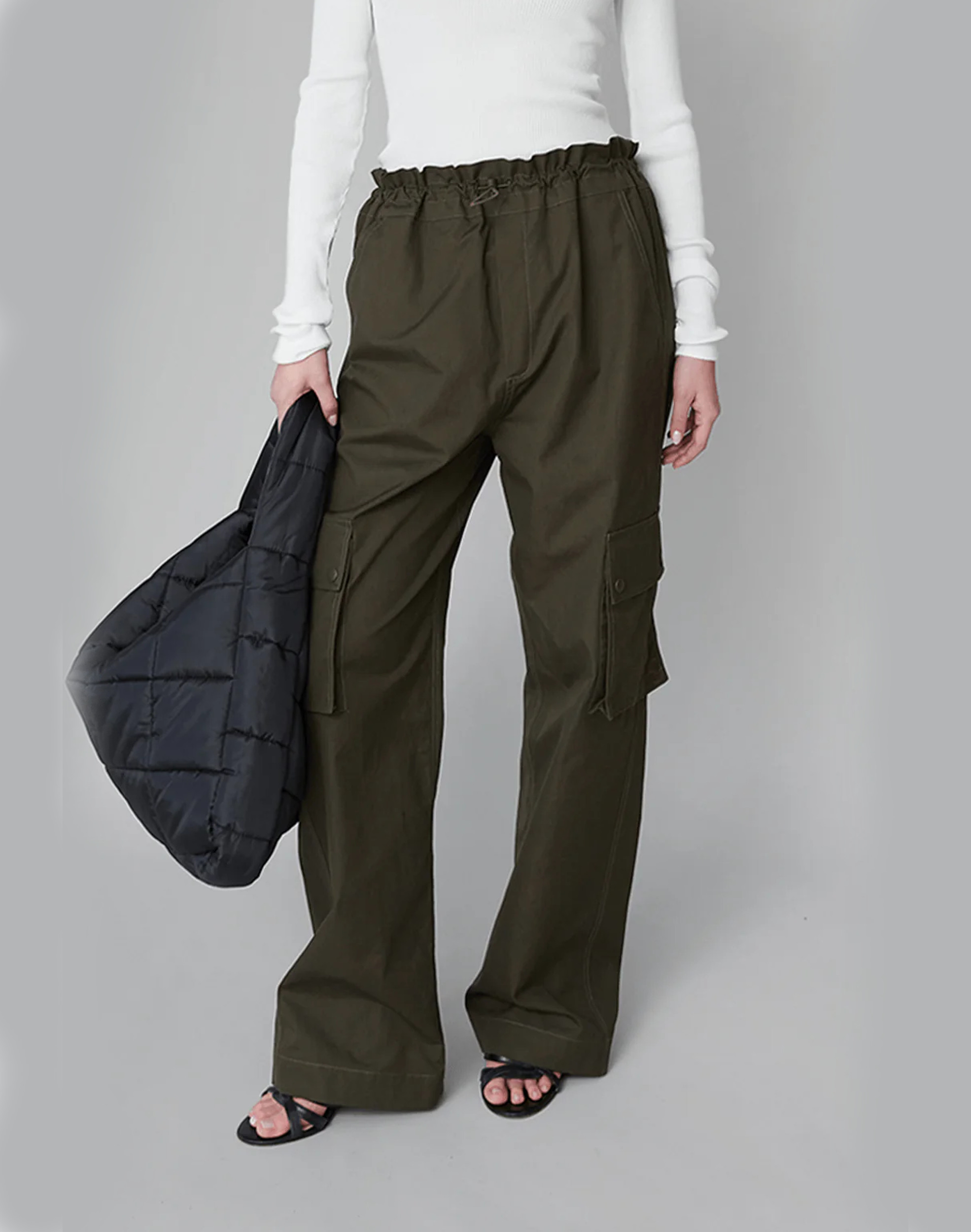 Die Maud Cargo-Hose von OpéraSPORT vereint eine verfeinerte utilitaristische Ästhetik. Aus 100% Bio-Baumwolle gefertigt, zeichnet sie sich durch eine entspannte gerade Silhouette mit hohem, elastischem Bund für eine komfortable yet strukturierte Passform aus. Seitliche Cargo-Taschen und dezente Front-Patch-Taschen setzen praktische und moderne Akzente.