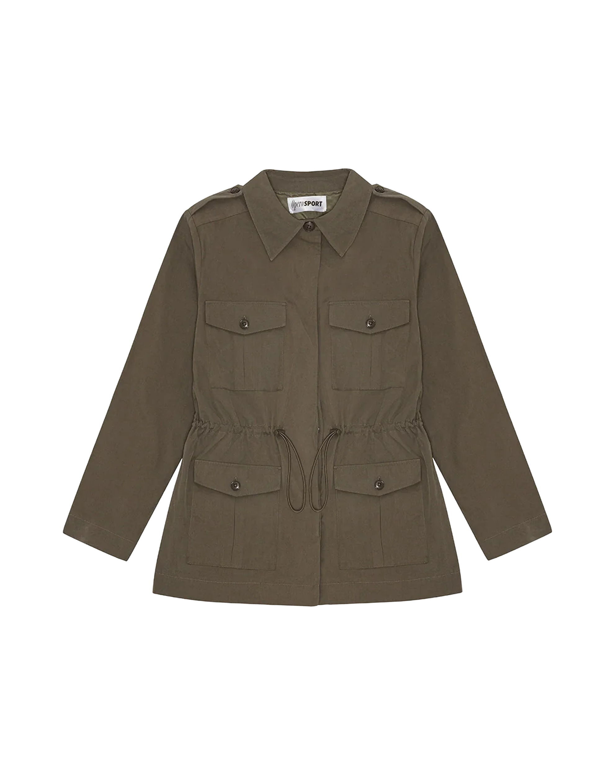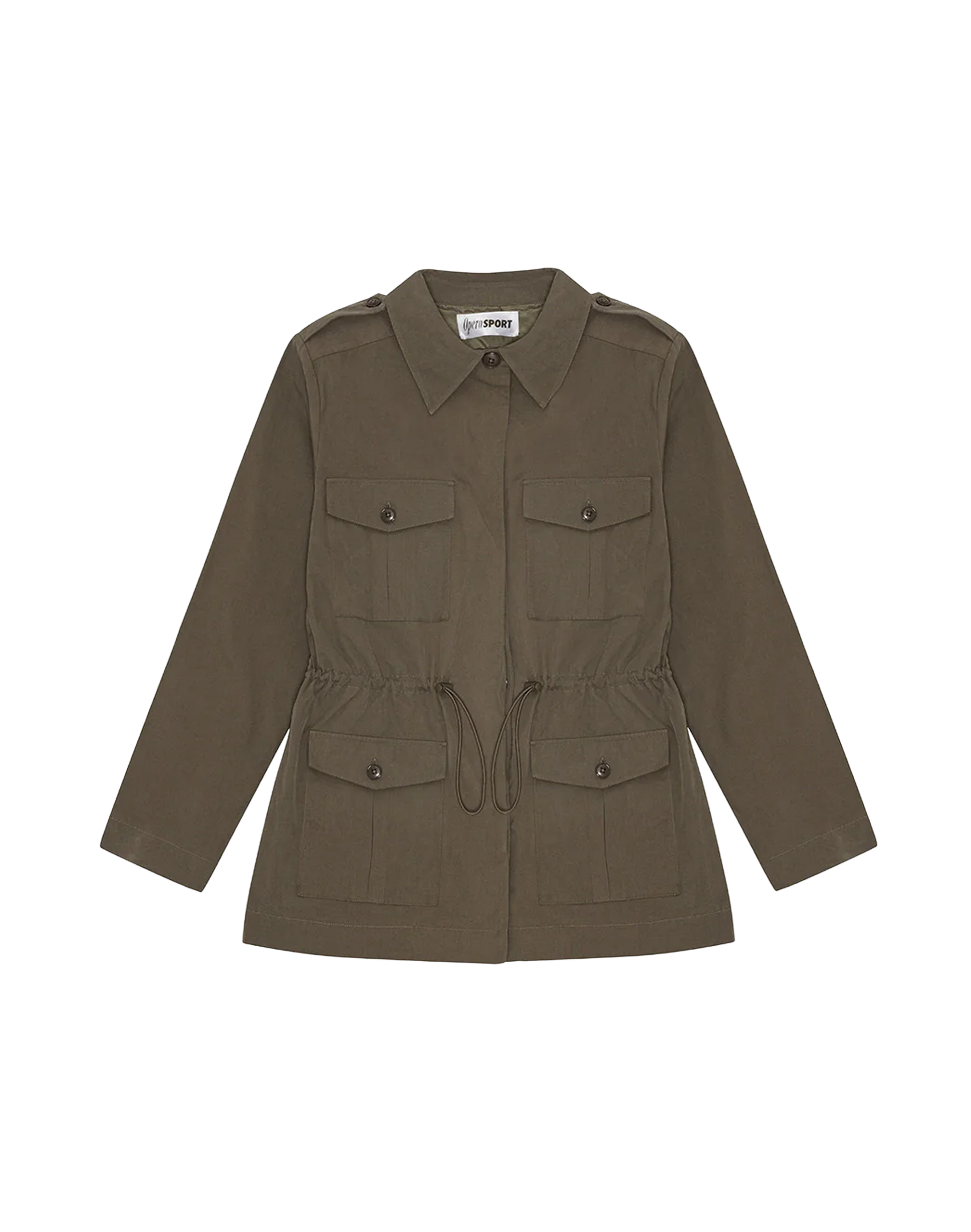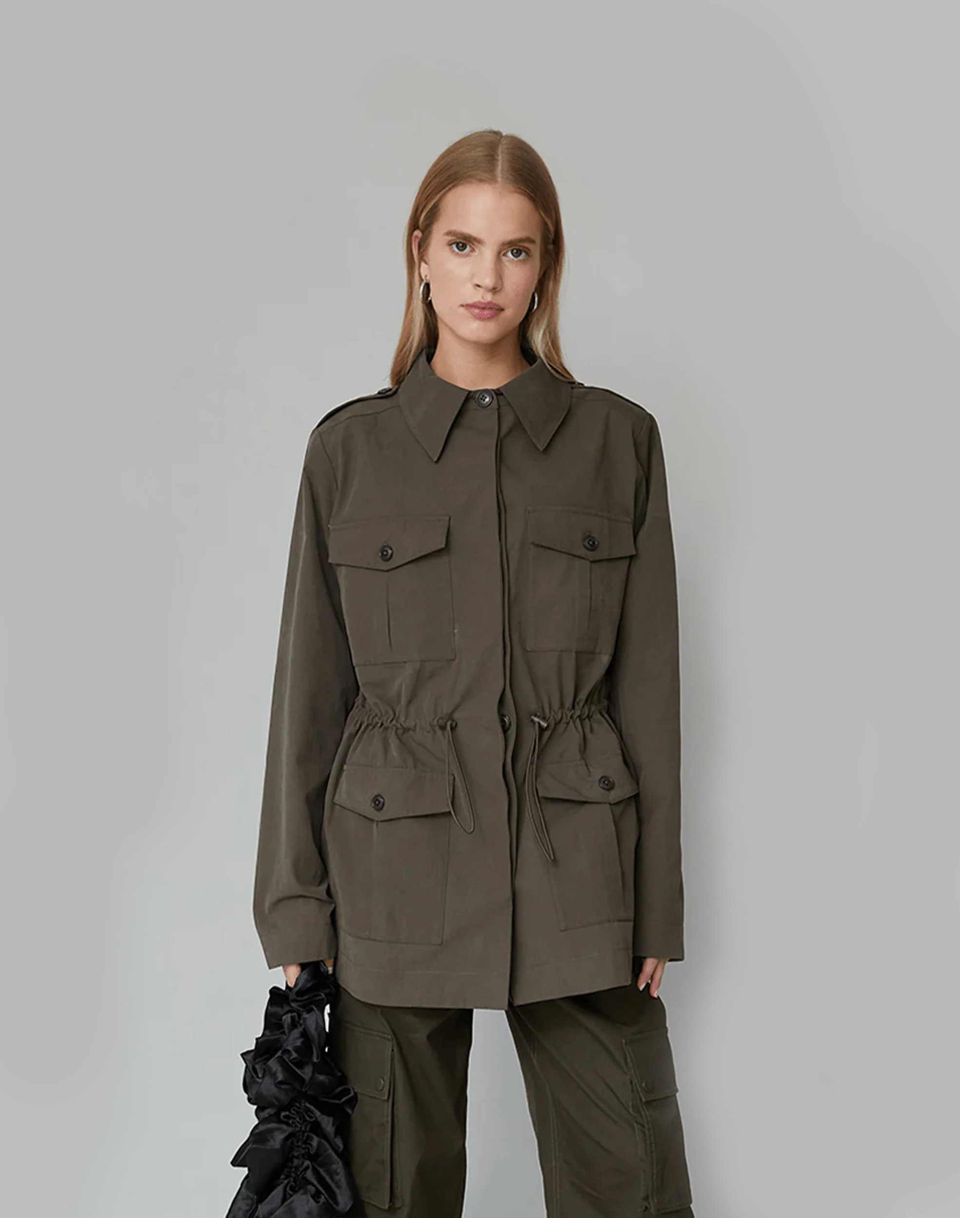 Die Maud Cargo-Jacke verkörpert OpéraSPORTs charakteristische Balance zwischen Funktionalität und schlichter Eleganz. Hergestellt aus 100% recycelter Baumwolle bietet die Jacke eine strukturierte Silhouette mit spitzem Kragen und verstellbarer Kordeltaillierung für eine individuelle Form. Mehrere Taschen mit Klappen an Brust und Hüften verleihen praktische Details, während tonale Druckknopfverschlüsse ein schlankes Finish schaffen.