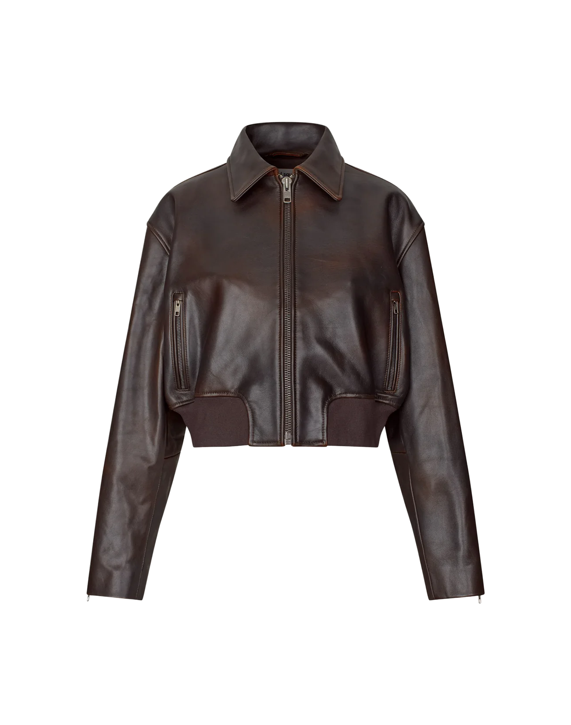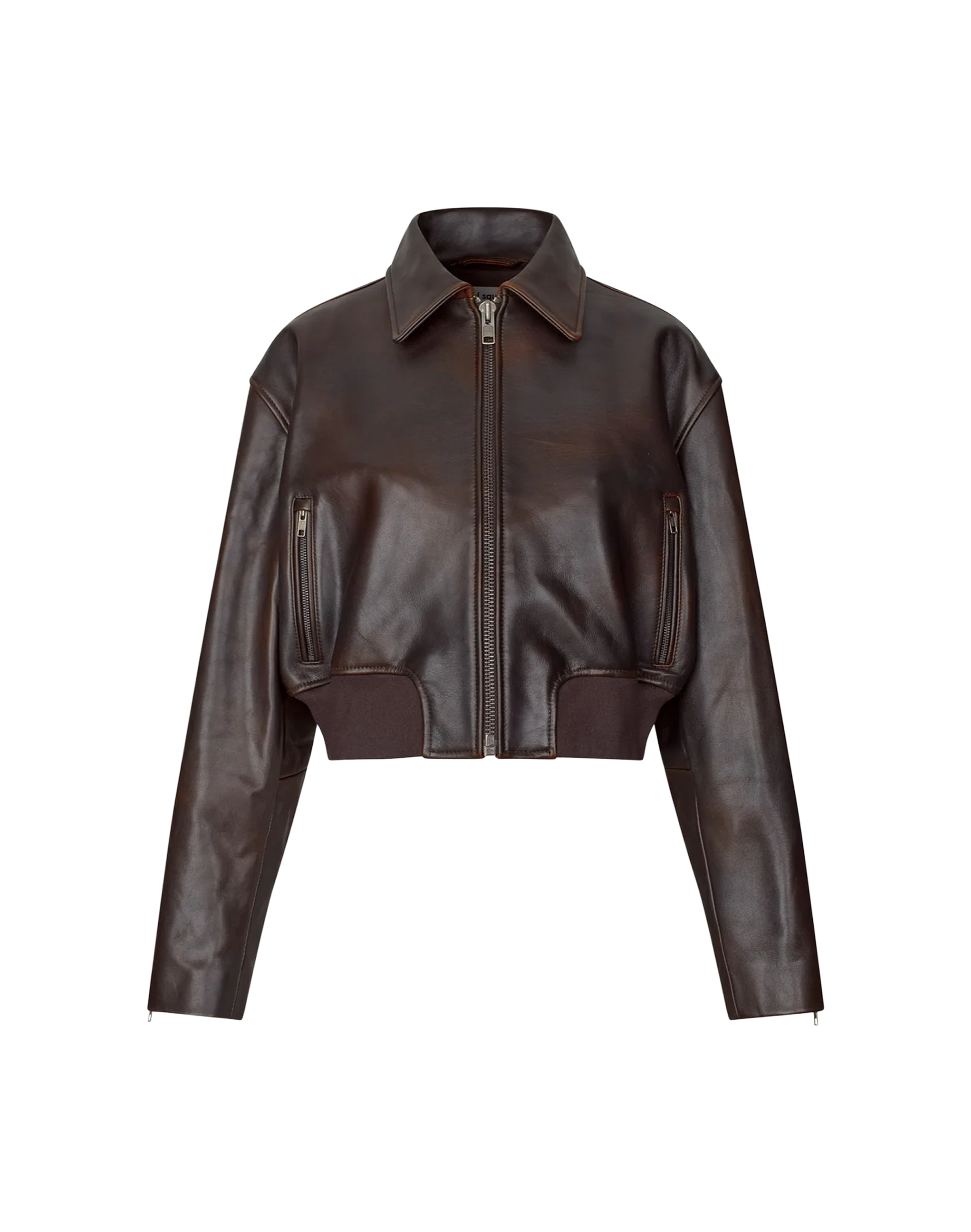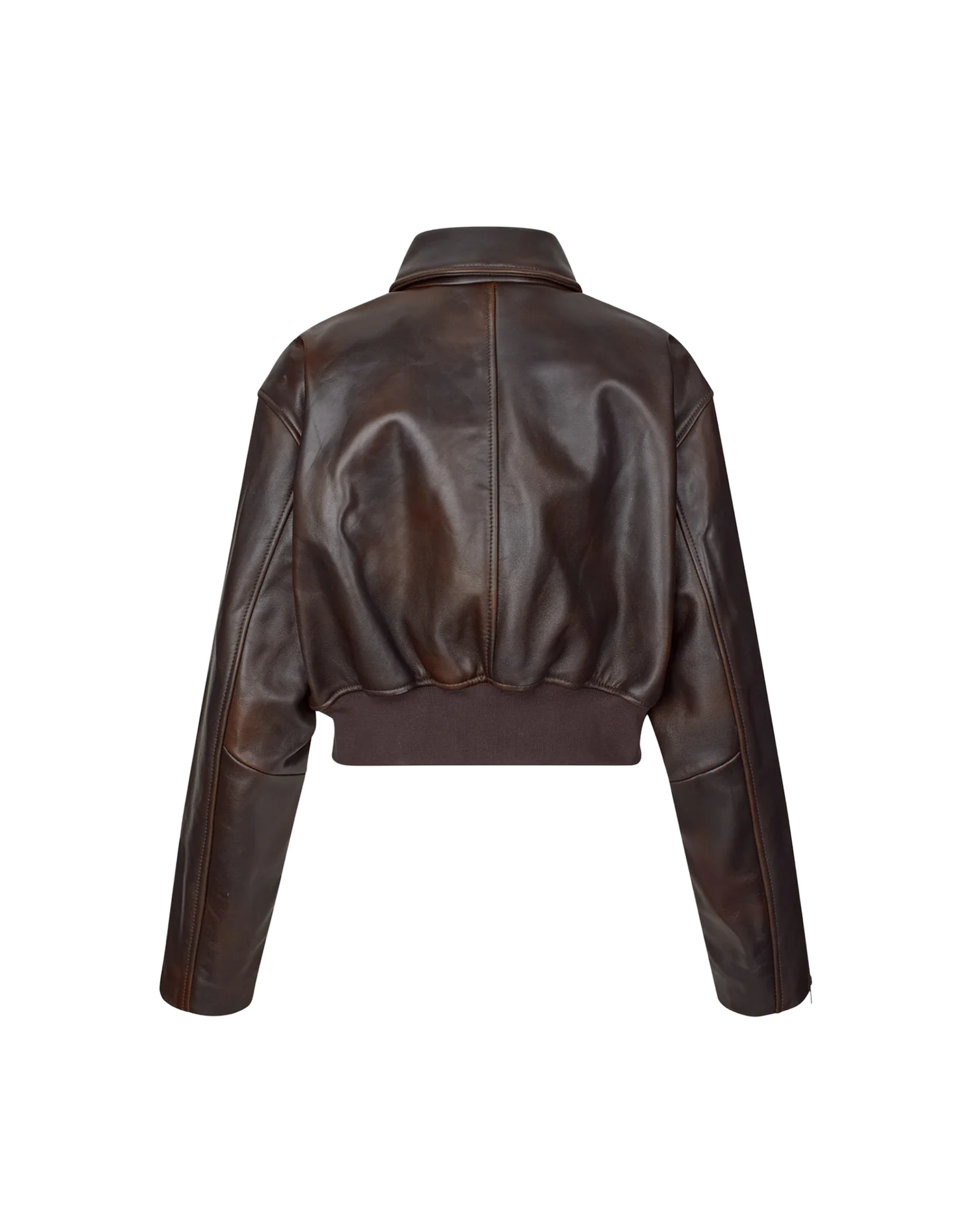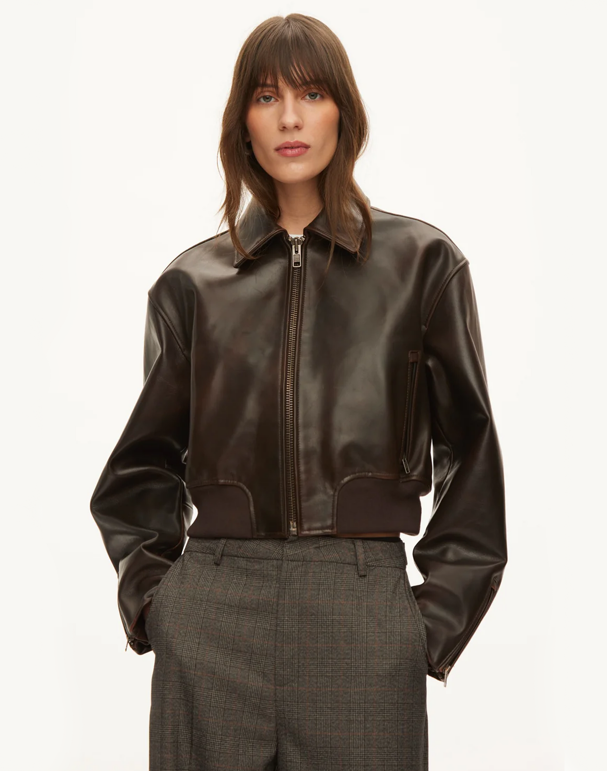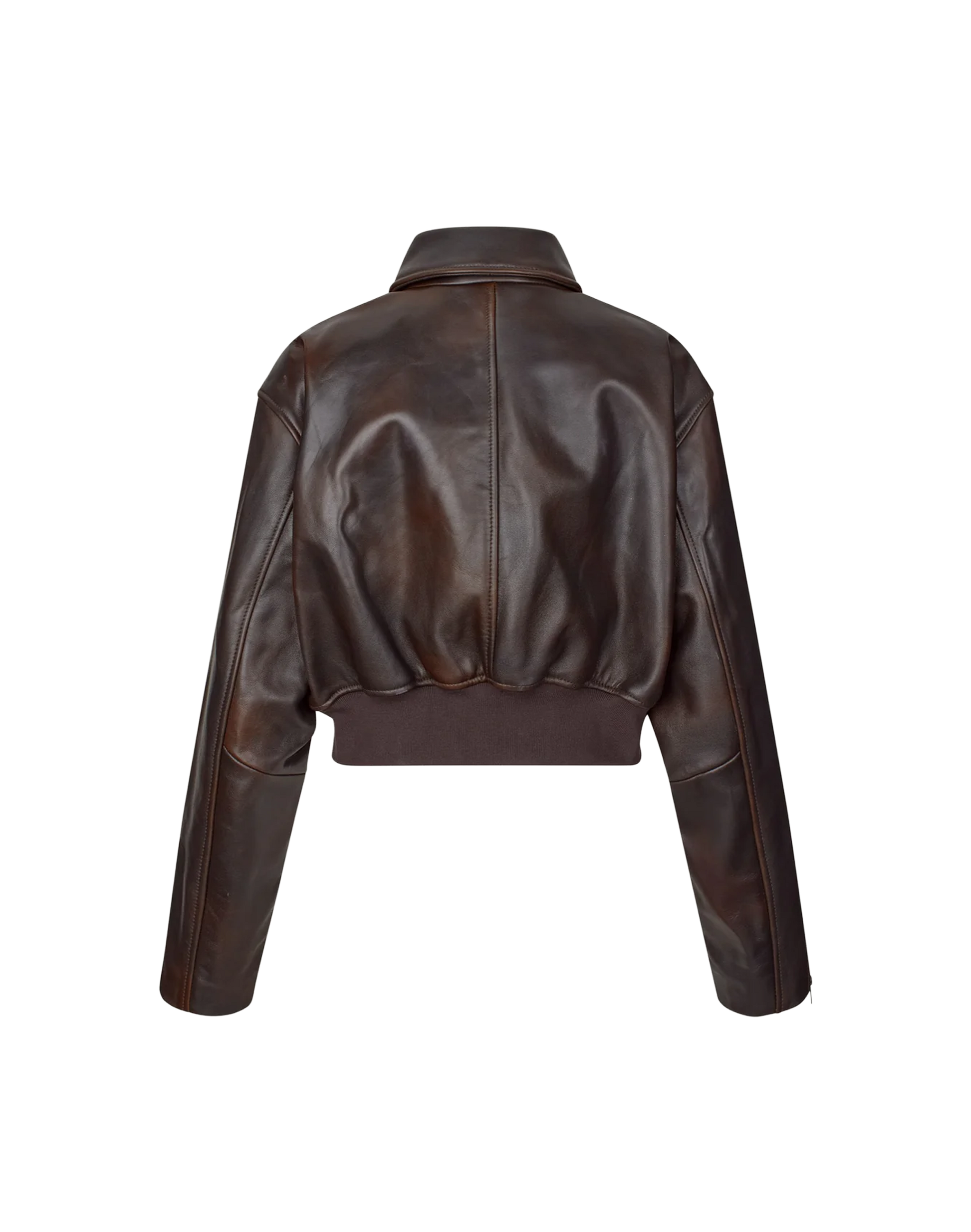 Cropped Bomberjacke aus hochwertigem Lammleder mit dezentem, burnished Finish. Das Modell überzeugt mit einer verkürzten, boxy Silhouette und überschnittenen Schultern für einen modernen, coolen Look. Ausgestattet mit Kragen, durchgehendem Metallreißverschluss, Reißverschluss-Leistentaschen, Zip-Bündchen an den Ärmeln und einem breiten Rippstrickbund. Eine moderne Lederjacke mit klarer Attitüde und zeitlosem Design.